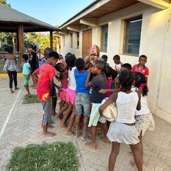 La joie des enfants qui nous a beaucoup émue lors de danses et de chansons au karaoké le soir.