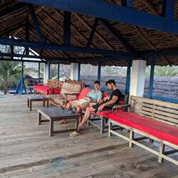 Ce matin levés 7h30 pour prendre le petit dej. A 8h nous partons en pirogue direction la barrière de corail afin de trouver un coin sympa pour observer les fonds marins. C'était grandiose !Read more