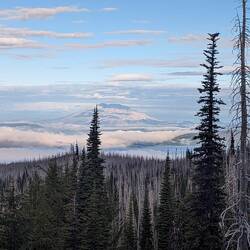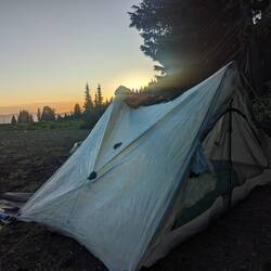 This morning I woke up to an excellent view of Adams. I slept in a little. I was the last to get on the trail. But it was cold and windy. I didn't want to get out of my sleeping bag! Started hiking around 7:30 and had great views of Adams, hood, Rainier and Helens. Eventually we got down into the trees. The afternoon was a bit cold, windy and rainy but it cleared up towards the end of the day. I am super excited for the next two days as we get into goat rocks wilderness. Tonight's campsite is excellent. I'm up on a ridge, protected from the wind by trees and tomorrows sunrise will be amazing.Read more