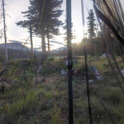 This evening we are camping on a peninsula at summit lake. Soaked my lower body which felt very nice. The peninsula got some more wind so the mosquitos were a little less bad but still eating dinner in my tent. Tomorrow we get into shelter cove resort and I'm getting a large pizza for myself. I want leftovers for lunches over the next two days ☺️