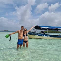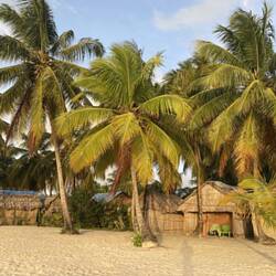 Den Nachmittag verbringen wir - wie sollte es auch anders sein - am Strand bei Kokosnuss und Rum. Am Abend gibt es dann wieder Reis, Salat und frittierten Fisch (2 mal Kopf). Während sich die eine am späteren Abend ins Bett zurückzieht, bringt der andere ein paar neuen Freunden Chic bei - irgendwie müssen wir ja noch die Rumflasche geleert bekommen bis zu unserer Abreise.