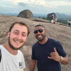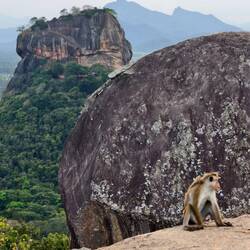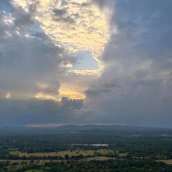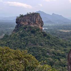 Climb to Pidurangala Rock and 360 degrees view on the center of Sri Lanka, view of Lion's Rock at sunset.