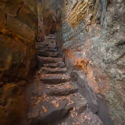 Leaving the labyrinth we were now deep in the woods on top of the gorges with the river running far below us, but the views didn’t stop. We crossed wooden bridges, climbed hills and then more stone steps and then walked through more gorges that were so dark we couldn’t see each other at each end.