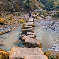 We continued through more woods and for the next kilometre or so it was all uphill until finally it levelled off and as we rounded a bend in the trail it started going down. We crossed more bridges, some over rivers and some of gaps in the gorges but all were incredible. At 10km in we both wished we brought more to drink but I knew it couldn’t be to much further and now we were almost back at ground level with the river next to us. Our final hurdle to leave the trail was to cross a bridge of stones running through the river. Ellie told me to film her crossing incase she fell in which I did but that also left me with 2 phones in my hand so I hoped I didn’t fall in because that would have been seriously expensive.
