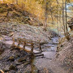 At 2pm we set off from the car park back towards the waterfall via the road we had just walked up and instead of going back to the falls we crossed over and went up stone steps set into the side of the gorge. It gradually got steeper and steeper almost ladder like until we reached a plateau and came to some woods. It was a beautiful hike gradually going uphill but we didn’t really notice until we started to get to more stone steps ascending up into the gorge and as we were climbing the walls started closing in making a passage way. Before we knew it we were deep into a network of canyons, with stone steps leading us up and down and round corners. It was a labyrinth straight from the pages of one of Tolkien’s books and every turn led to an even more amazing view. The gorge sides of granite and limestone were dotted with green and orange moss and with the fall leaves on the ground it was like a multicoloured carpet leading to some faraway land that you read about in a fairytale. We were so lucky to see it like this and had perfect weather.