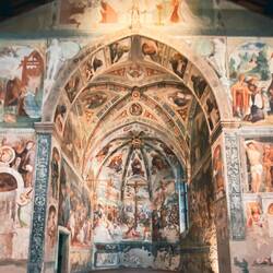 After that church, almost next to it was a tiny little church that was also open. This church was built in the 13th Century and to our amazement it had a spectacular Muriel covering the back wall and ceiling. It was an incredible sight and the more we looked the more we saw. The detail was incredibly intricate.