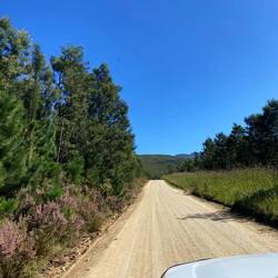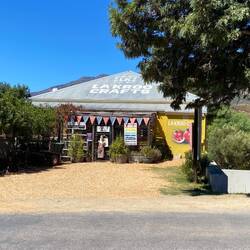 After a couple of coffees we waited for the sun to come up and then packed up. At 9:30am we were leaving and heading through George and then up the Outeniqua Pass. An 800 meter mountain with lots of bends but no real switchbacks, although it was very scenic. Once we had summited the Outeniqua Pass we left the N9 and joined the N12, a more rural route and we started passing lots of little farm Padstals so we stopped at one for breakfast. I had the full breakfast while Ellie had an omelette, mine was also served with a roosterkook and some homemade fig jam so we ended up buying a jar of fig jam to take home.