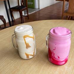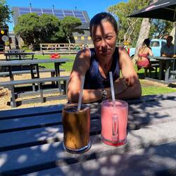 We walked about a mile and a half until we came to a little beach cafe and we were going to buy ice creams but once we saw the milkshakes we changed our minds. Ellie had a passion fruit and I had chocolate. We drank them and walked back to the campsite along the road.