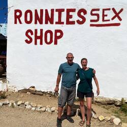 First on the list was Calitzdorp and it was so small with just 3-4 coffee shops that we just drove straight through. Then there was Ladismith that seemed smaller and had nothing in atall. Fortunately though, the drive along route 2, which is the garden route was absolutely spectacular with Mountain View’s, open plains filled with red rocks and mountain passes. At 11:30am we came to one of the top stops of the entire trip. Ronnies Sex Shop. This place is world famous and no it isn’t actually a sex shop it’s a tiny bar that was dying with no trade and Ronnies Friends got really drunk one night and for a laugh they painted Ronnies Sex Shop on the wall outside. Since then everyone stops. Girls can leave bras and boys can leave t-shirts or hats and the bar area is filled with signed bras, everyone has written on the walls and there are there are signed t-shirts hanging at the back of the room and from the ceiling. It is the weirdest place and in all honesty a total dive but it’s a pilgrimage and we made it.