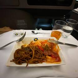 We got through both train journeys with no mishaps or delays for the first time ever. We had our dinner in the airport lounge which was amazing. Red Thai Curry & Noodles. Our next stop is Rwanda.