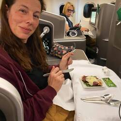 Looking forward to being comfortable for the next ten hours. Good food, comfy seats and a lay flat bed.