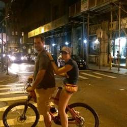 Exhausted from our ride and running out of time, we take the subway back. We return the bicycle with one minute to spare. Robby chauffeurs me around on the back of his bike after we returned mine.