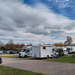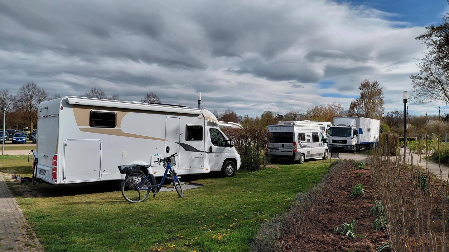 Der Womostellplatz im Brückenkopfpark von Jülich ist ein sicherer Zwischenstopp gen Westen. Obwohl es bestens gefüllt ist, auch wegen Ostern, finden wir auf Anhieb einen günstigen Platz.