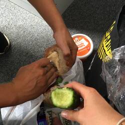 Zweite Amtstat: Endlich frühstücken und das sogar noch im Zimmer ohne Besteck.