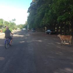 Mit dem Fahrrad geht es durch Granada und zum riesigen See Cocibolca an dem freilaufende Pferde grasen und man aufpassen muss, dass man kein Rind platt fährt. Das Gebiet hier heißt zwar CentroLæs mere