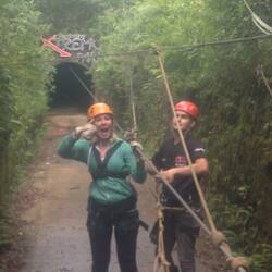 Insgesamt hat der Park über 4 km Kabel zum entlang gleiten. Teilweise geht es in schwindelerregender Höhe durch die Bäume und über das Tal hinweg. An zwei Stationen wird man sogar so angeschnallt, dass wir in Superman-Position über das Tal und durch einen Tunnel "fliegen".Read more