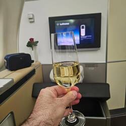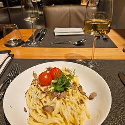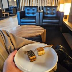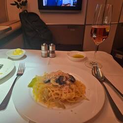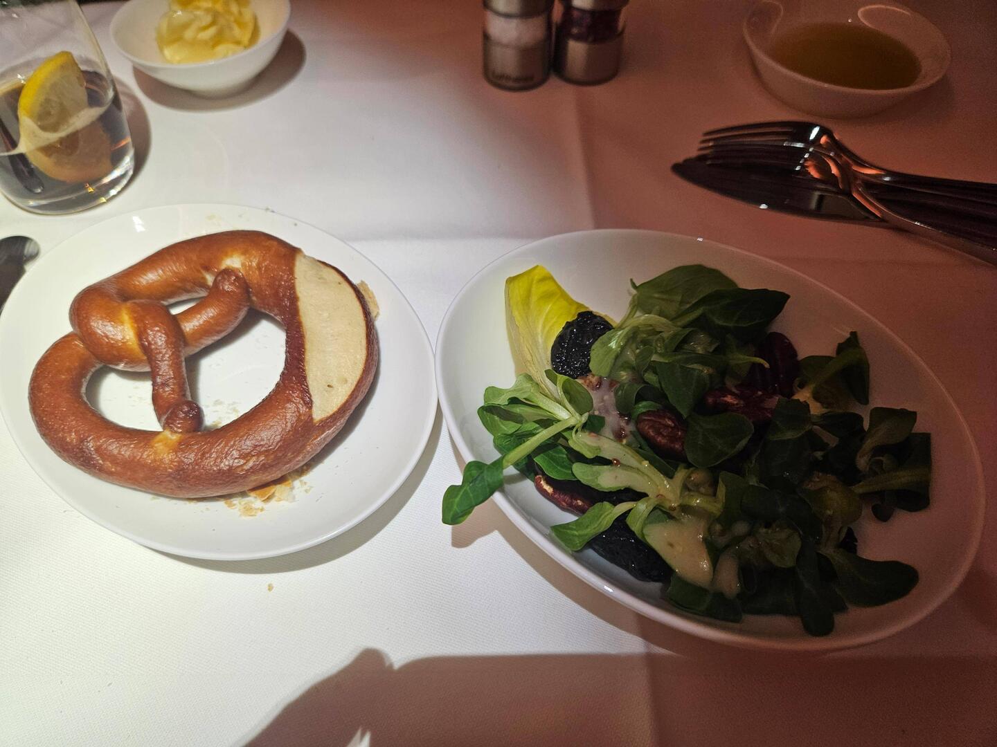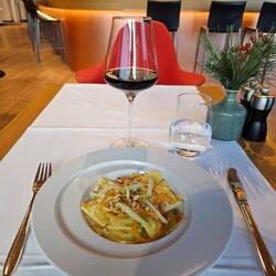 In the lounge I had a Valpolicella red wine and Appenzeller cheese ravioli with granny smith, fried onion, pine nuts and Belper Knolle cheese.