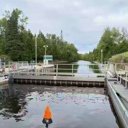 The last couple days we made some tracks. Originally planned to arrive in Barrie on Sunday so I could take the train to Toronto to fly back to Florida for workshops… But Debbie is now affecting weather up here so yesterday we rescheduled to arrive tomorrow and then today rescheduled again. Barrie is on Lake Simcoe and it was a 25 mile crossing to get here. Tomorrow would have been a crappy ride. Today was choppy but ok. Since I last posted (I took a 2 day hiatus!!) we covered 87 miles (49 today) and 12 locks (6 today). Somewhere in that mix we hit the crest and are now going down to Georgian Bay and Lake Heron. One of the six locks today was another lift lock. This one brought us down 49 feet. I got some video 🙌. Barrie will be James and the animal’s home for about 9-10 days and mine for another three. We are in the City Transient Marina which is separated from the city’s very big long term lease Marina. We have a nice park adjacent and are in the heart of downtown. It seems like a pretty vibrant city. More exploring to come. Moki and I just scratched the surface.もっと詳しく