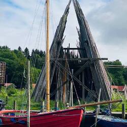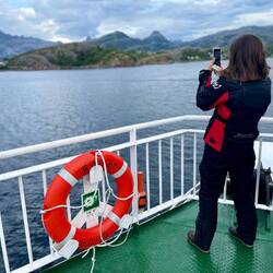 Heute Morgen haben wir uns im Regen auf den Weg gemacht und das Zelt nass eingepackt 😬. Schon gestern haben wir für heute Tickets für das Boot gebucht, das Touristen zumLæs mere