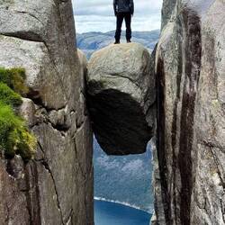 Die Wanderung zum Kjeragbolten (dem zwischen den Felsen hängenden Stein) war ein unvergessliches Abenteuer. Wir bewältigten 8 Kilometer in 5 Stunden und begegneten dabeiLæs mere