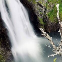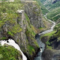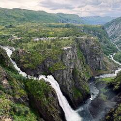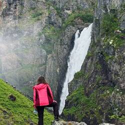 Der zweite Halt für heute ist der Wasserfall Låtefossen. Er befindet sich direkt an der Straße, was ihn leicht zugänglich macht. Hier beginnt ein Pfad, der zurLæs mere