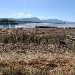 Nur gegen Abend kam ein Schafhirte mit seinen Tieren vorbei. Fliegen gibts natürlich auch hier,Baca selengkapnya