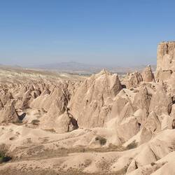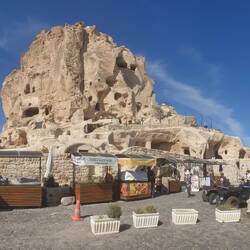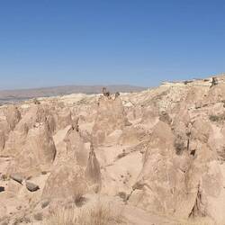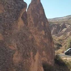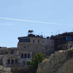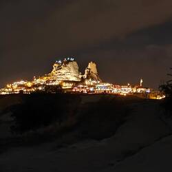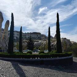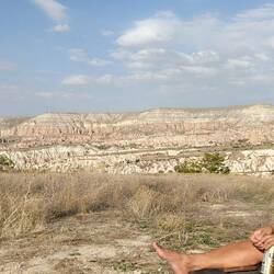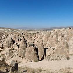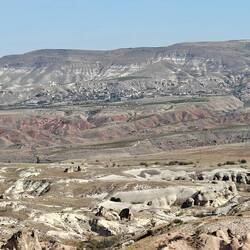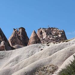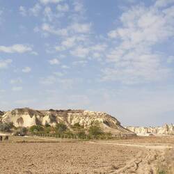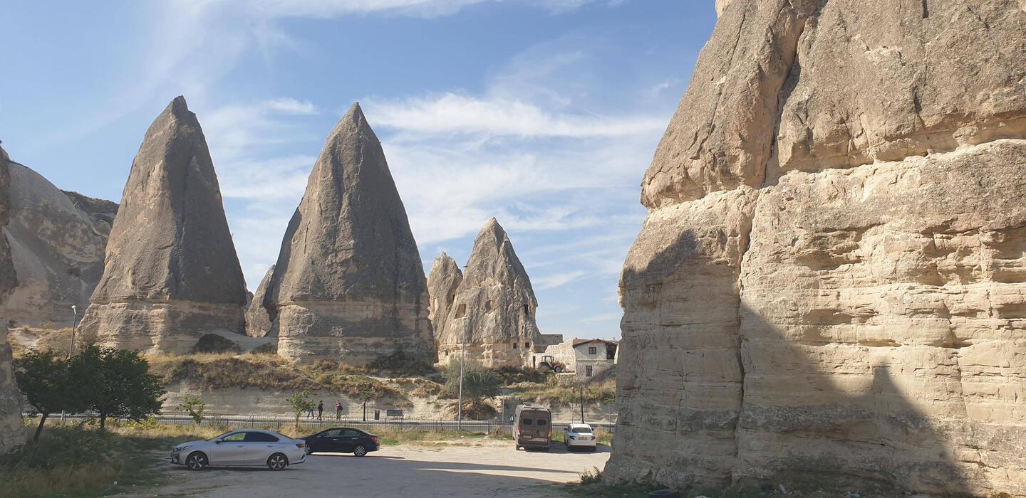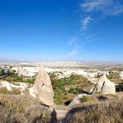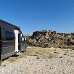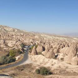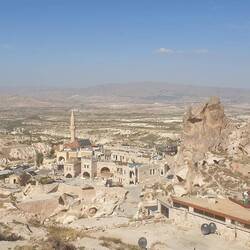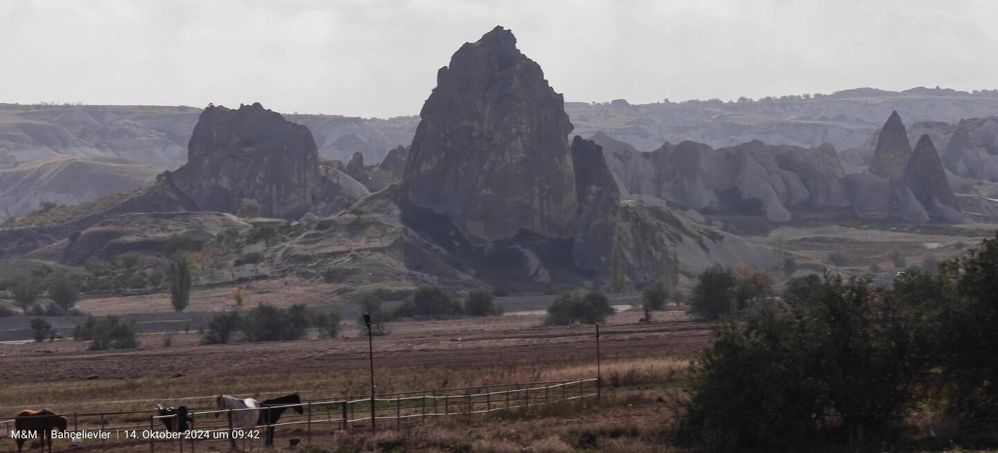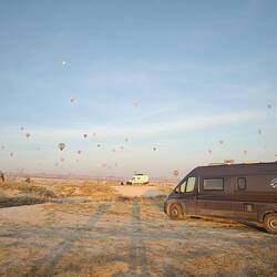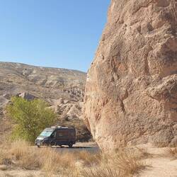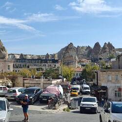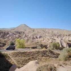 Unser Plätzchen für die Nacht ist diesmal auf der anderen Seite mit Blick nach Osten, aber auch wieder etwas erhaben, sodass man einen guten Blick auf die Stadt Göreme hat.