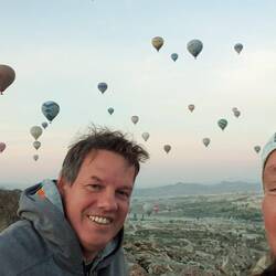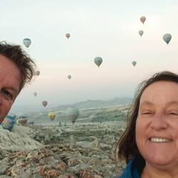 Ein Grund, das warme Bett bereits um 5.30 Uhr zu verlassen, ist dieses Heißluftballon Spektakel am Himmel über Kapadokien. Wunderschön anzuschauen. Wir danken all den Menschen, die hunderte vonBaca selengkapnya