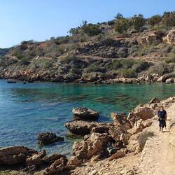 Wir starteten unsere kleine Wanderung heute Morgen mit dicker Jacke, denn es ging ein kühler Wind. Als wir jedoch den Konnos Strand erreichten, staunten wir nicht schlecht, als wir etlicheLæs mere