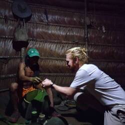 Una vez mas, nos adentramos en la selva amazonica para dormir en la Amloca de Johnny y preparar mambe. Fuimos Curtis, otro chico y yo. Nuevamente, caminamos por la selva húmeda, con las botas de lluvia y con la gota gorda de sudor. Al llegar, también nos metimos al pileton de agua que hay cerca, juntamos hojas de coca, dormimos la siesta, preparamos mambe, mambeamos e hicimos una caminata nocturna. En esa caminata encontramos teníamos dos objetivos: tarántulas y serpientes. Uno lo conseguimos y las fotos nos sirven de testigos 🔥.