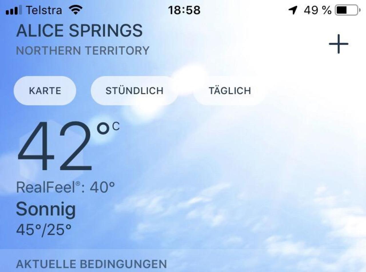 Nach drei Tagen hieß es welcome back in Alice Springs.