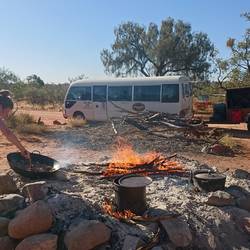 Heute wurden wir um 5:30 morgens an der Unterkunft abgeholt. Nach dem alle eingesammelt waren ging es ins Outback - 5-6 Stunden Fahrt in einem alten lauten Bus auf schlechter Straße.