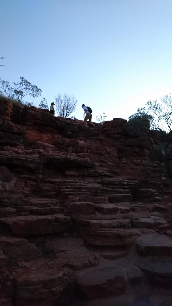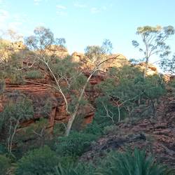 Nach dem Sonnenaufgang nutzten wir die kühlen Morgenstunden für eine Wanderung durch das Valley of the winds in den Olgas (Kata Tjuta).