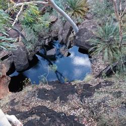 Nach einiger Zeit oben auf dem Canyon kamen wir an eine Art große Felsspalte aus der Bäume ragten.