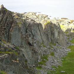 Ich mag gar nicht mehr weg von hier, so eindrucksvoll ist der Blick in alle Richtungen. Er geht steil hinauf durch's Geröll. Dabei passiere ich eine riesige Felswand, die du aussieht, als wäre einLæs mere