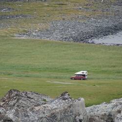 Hamningberg liegt im Schutze eines etwa 80 Meter hohen Berges, dem Hardbakken. Heute möchte ich die Aussicht von dort oben erkunden.