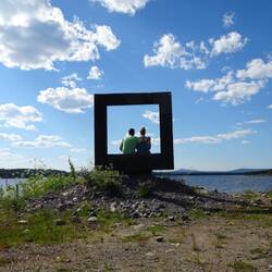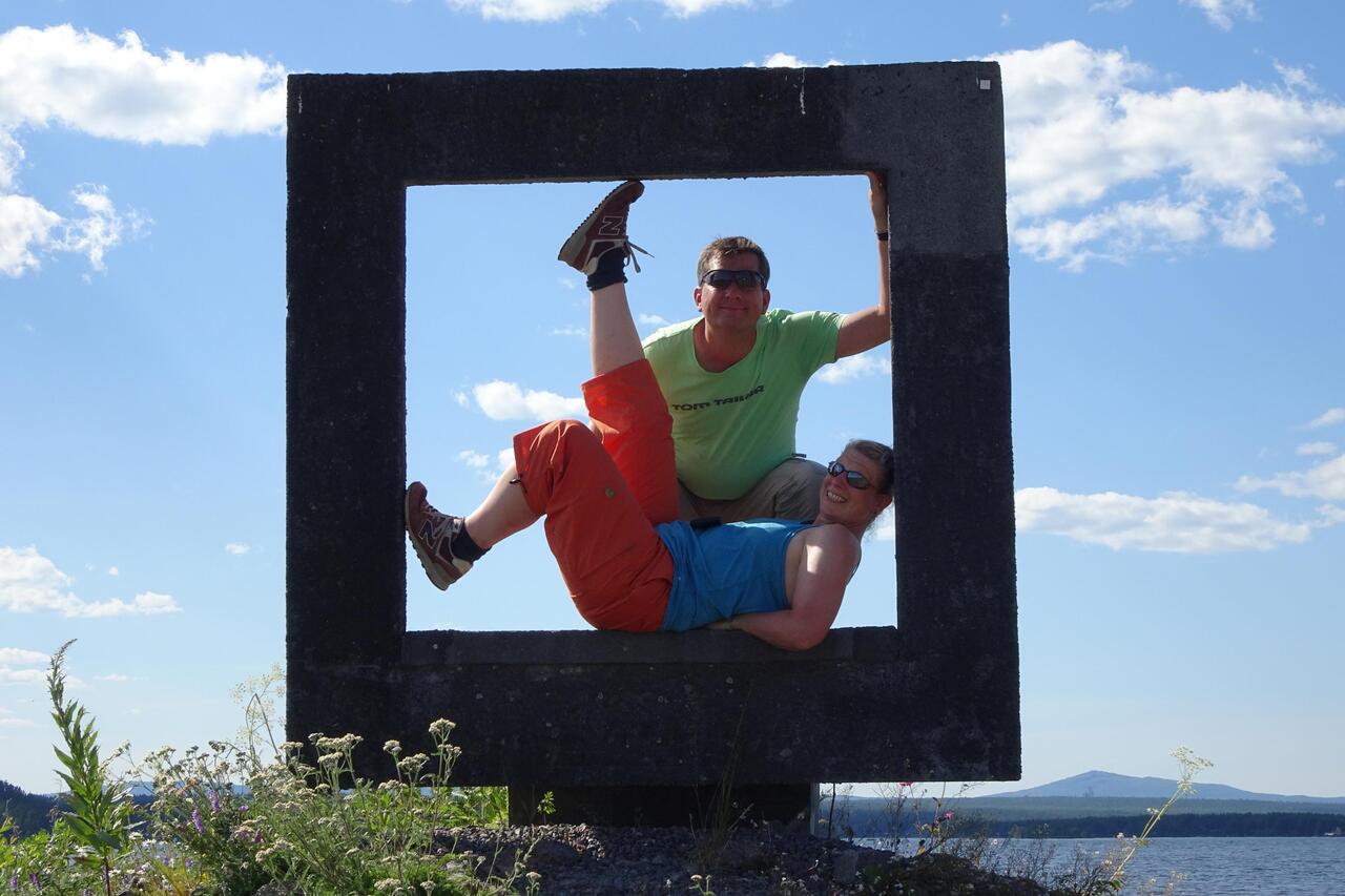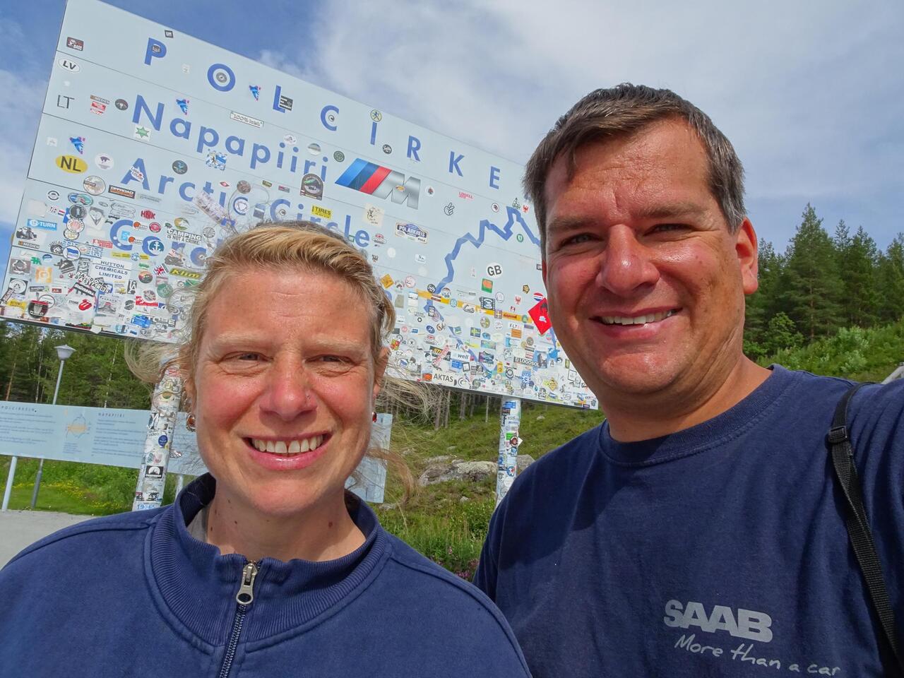 Wir überqueren kurz vor Jokkmokk den Polarkreis. Ab heute können wir Mitternachtssonne erleben.