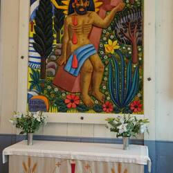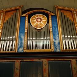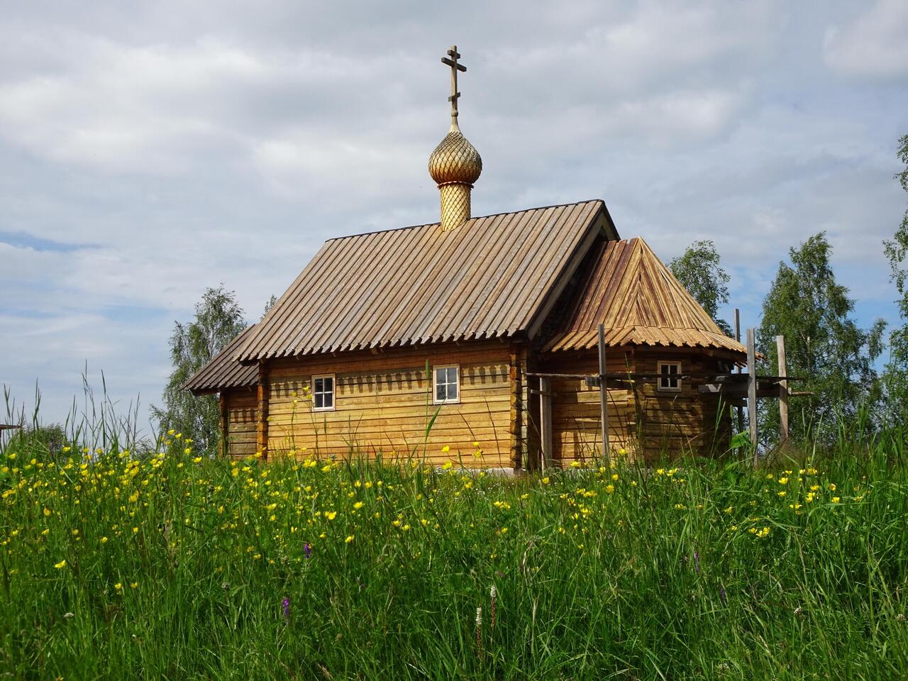Diese Kirche war uns gestern auf dem Hinweg schon aufgefallen. Kurioserweise steht der wunderschön gefertigte Holzbau vor einem Privathaus quasi "im Garten".