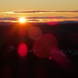 Gegen halb drei sind wir wieder zurück am Auto. Während die Sonne sich schon wieder langsam von Horizont erhebt, ziehen unten Nebelschwaden auf, der Mond taucht über den Bergen auf.