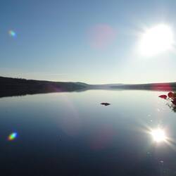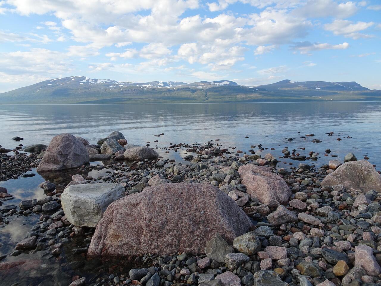 Als wir am Ufer des Luleälv-Flusses ankommen, haben wir immer noch einige beschwerliche Kilometer vor uns. Der breite Fluss liegt still und scheinbar bewegungslos vor uns, er spiegelt idyllisch. ImLæs mere