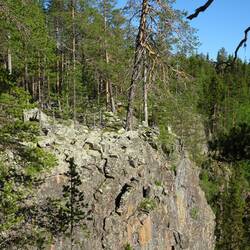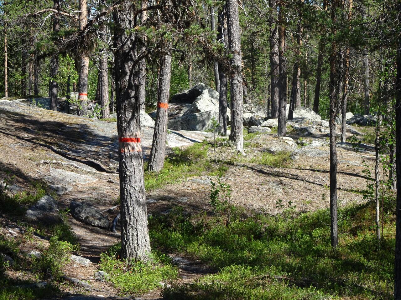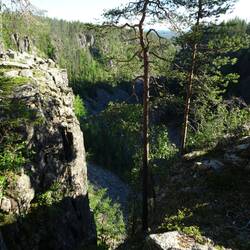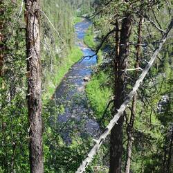 Ein langer, steiler Abstieg steht bevor: Vom Rande der Måskosgårsså-Schlucht hinab bis an ihr zu unteres Ende am Luleälven.