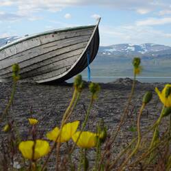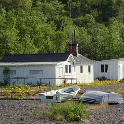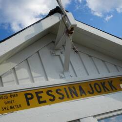 Manchmal macht man unerwartete Entdeckungen. Zum Beispiel, wenn man aus Neugier vom Rastplatz aus steil zum Torne-Fluss herabgeht. Dort finden wir ein Haus und viele einfache Fischerhütten, ein BootLæs mere