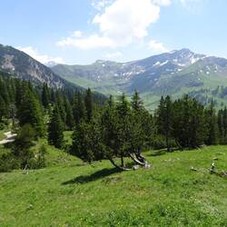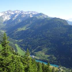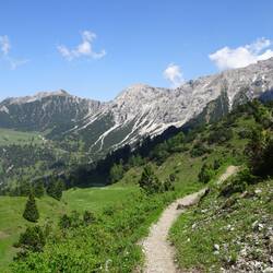 Der Sassweg führt zur Sassalpe und zum Abzweig "Sassförkle". Bereits jetzt ist die Aussicht grandios.