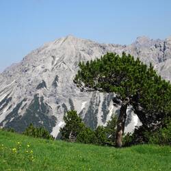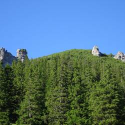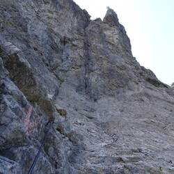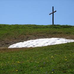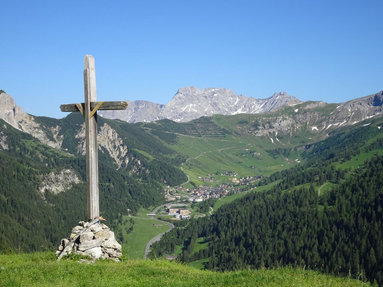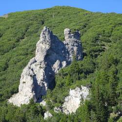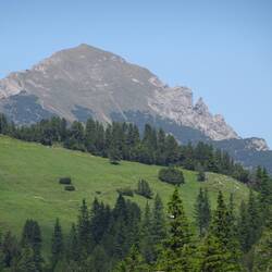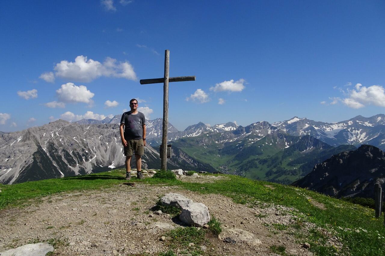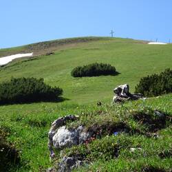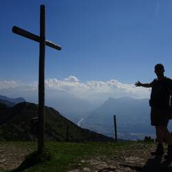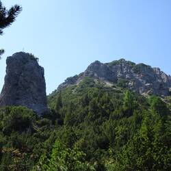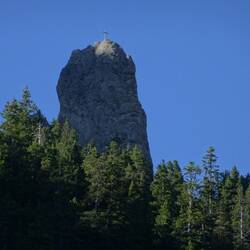Wie das Ding heißt, habe ich nirgends gefunden. Als Gipfel ist es nicht gelistet. Wie eine Felssäule steht es zwischen den Bergen am Hang und trägt ein Gipfelkreuz.