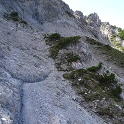 In der alpinen Zone wird der Weg anspruchsvoll: sehr schmal, steile Hänge, Geröll – und leider an der falschen Stelle Schnee. Nur ein paar Meter Restschnee, jedoch sehr steil und unten bereitsLæs mere