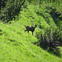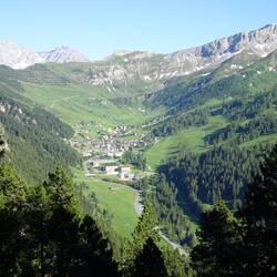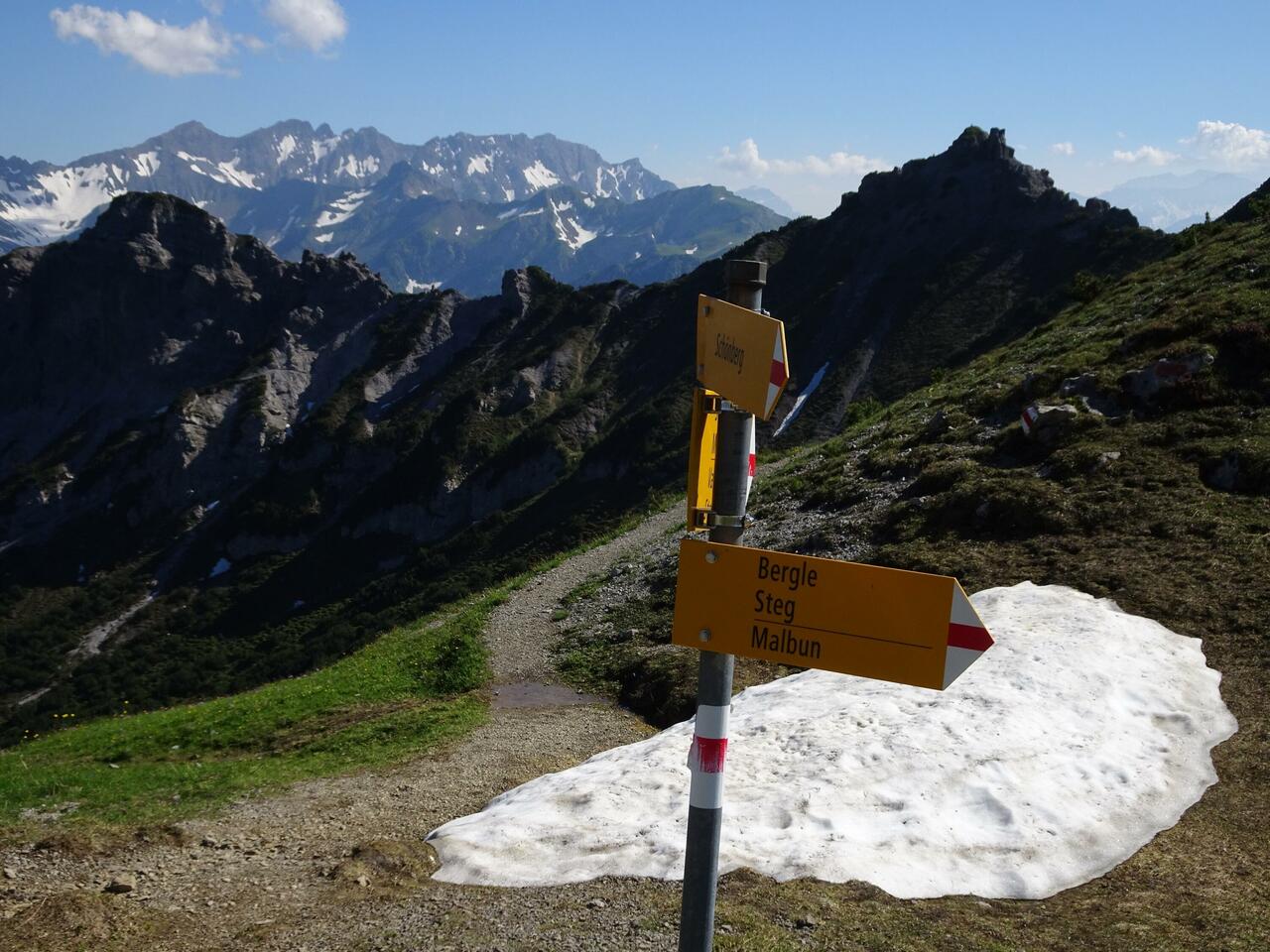 Einmal komplett um den Berg herumgelaufen ist nun Start/Ziel wieder im Blick. In Malbun wartet die Toppola auf Weiterfahrt.
