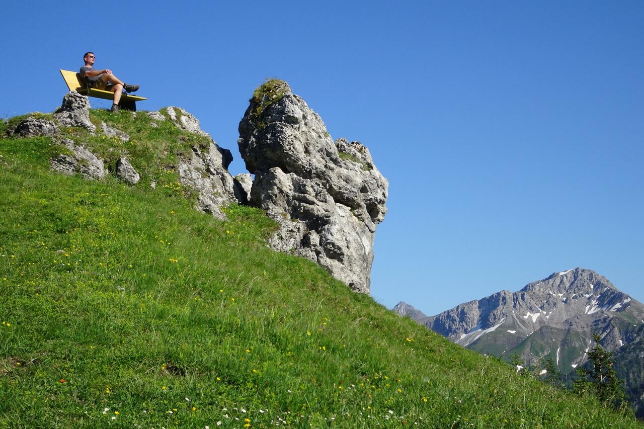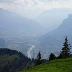 Sensationelle Aussicht: Eine Richtung bis nach Malbun und zu den österreichischen Alpen, die andere Richtung runter auf das Rheintal in die Schweiz hinein und in der dritten Richtung ist der RheinLæs mere