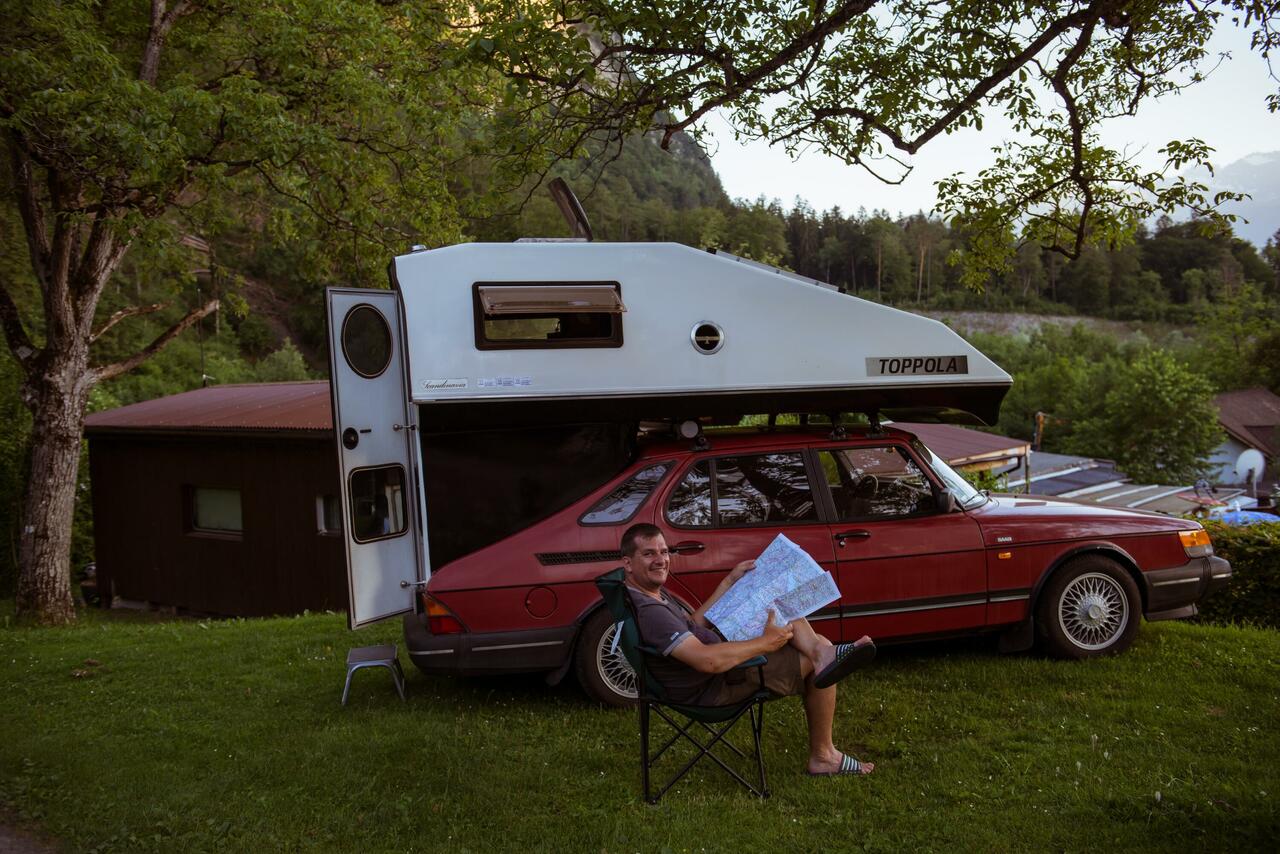 Eine Profi-Fotografin kam auf mich zu und stellte interessierte Fragen zur Toppola. Und dann meinte sie, es sähe so toll aus, wie ich da entspannt mit der Straßenkarte vor meinem Fahrzeug sitze...Læs mere