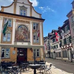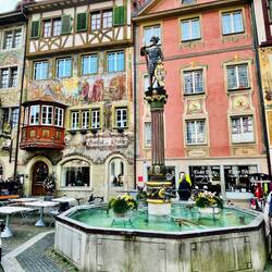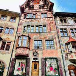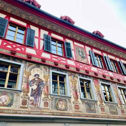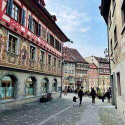 Superschöner kleiner Ort mit wunderbar bemalten Häusern. Allerdings komplett auf Tourismus ausgelegt UND in der Schweiz😃 Sprizz: 10 Euro, Essen gehen ab 25 Euro aufwärts… aber durchaus einenLæs mere