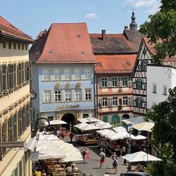 Der Rosengarten hinter der Neuen Residenz ist so etwas wie Bambergs schönster Logenplatz. Zwischen unzähligen Rosen und barocker Gartenordnung hat man einen perfekten Blick über die Altstadt undRead more